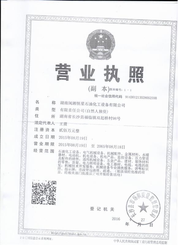 湖南閩湘恒星設(shè)備有限公司真誠的希望與石油石化各界交流、合作,竭盡所能提供優(yōu)質(zhì)的設(shè)備和服務(wù)以求共同發(fā)展!