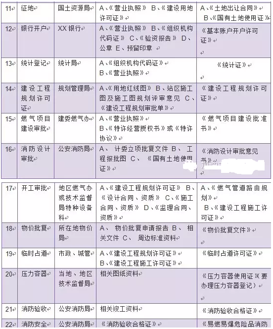 項(xiàng)目可行性研究報(bào)告(或項(xiàng)目建議書(shū))、立項(xiàng)批文(發(fā)改委)、 建設(shè)用地批準(zhǔn)書(shū)、國(guó)有土地使用證(國(guó)土資源局)、 地形測(cè)量圖(附帶矢量化光盤,測(cè)繪單位)、規(guī)劃紅線(規(guī)劃局)、 地質(zhì)勘察報(bào)告(勘察單位)、施工圖設(shè)計(jì)(設(shè)計(jì)單位)、 規(guī)劃許可證(規(guī)劃局)、施工圖審核意見(jiàn)書(shū)(市建委審圖辦)、 建筑工程施工許可證(市建委)、建筑工程消防設(shè)計(jì)審核意見(jiàn)書(shū)(消防局)、安全評(píng)價(jià)報(bào)告批復(fù)(安全生產(chǎn)監(jiān)督管理局)、 環(huán)境評(píng)價(jià)報(bào)告批復(fù)(環(huán)境保護(hù)局)、 壓力管道安裝安全質(zhì)量監(jiān)督檢驗(yàn)申報(bào)表(甲方申報(bào)技術(shù)監(jiān)督單位)、 特種設(shè)備安裝改造維修告知書(shū)(施工單位申報(bào)技術(shù)監(jiān)督單位后,提交一份給甲方留存)。